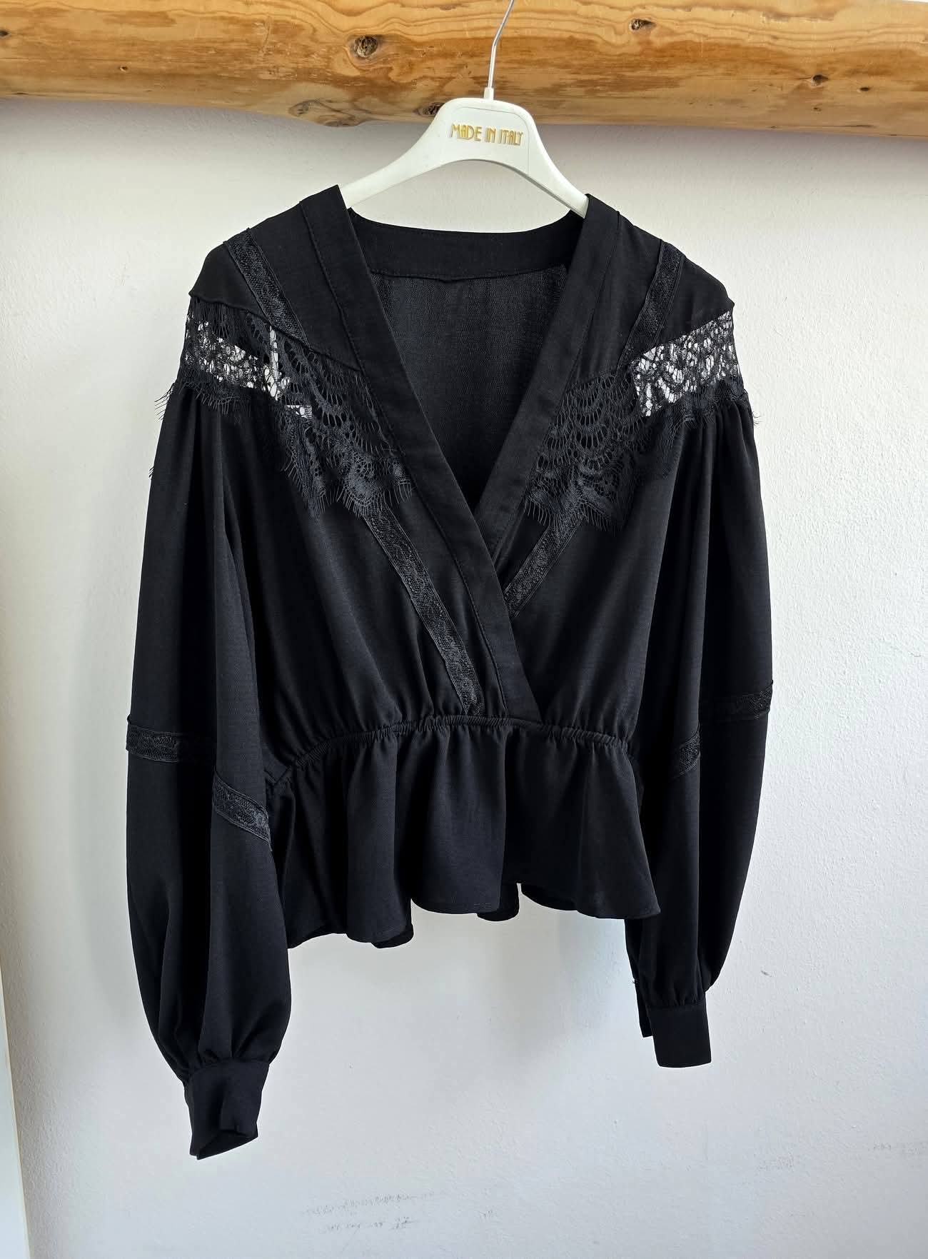 Bluzka z koronką baskinką czarna