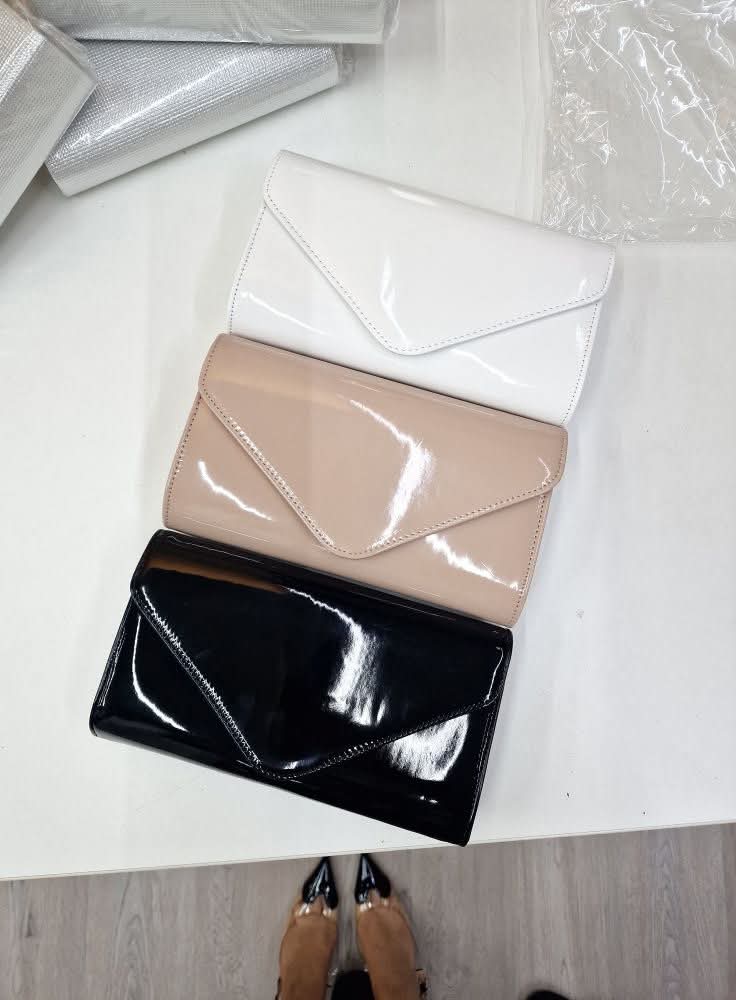 Kopertówka biała lakierkowa z łańcuszkiem możliwość noszenia torebki jako listonoszki