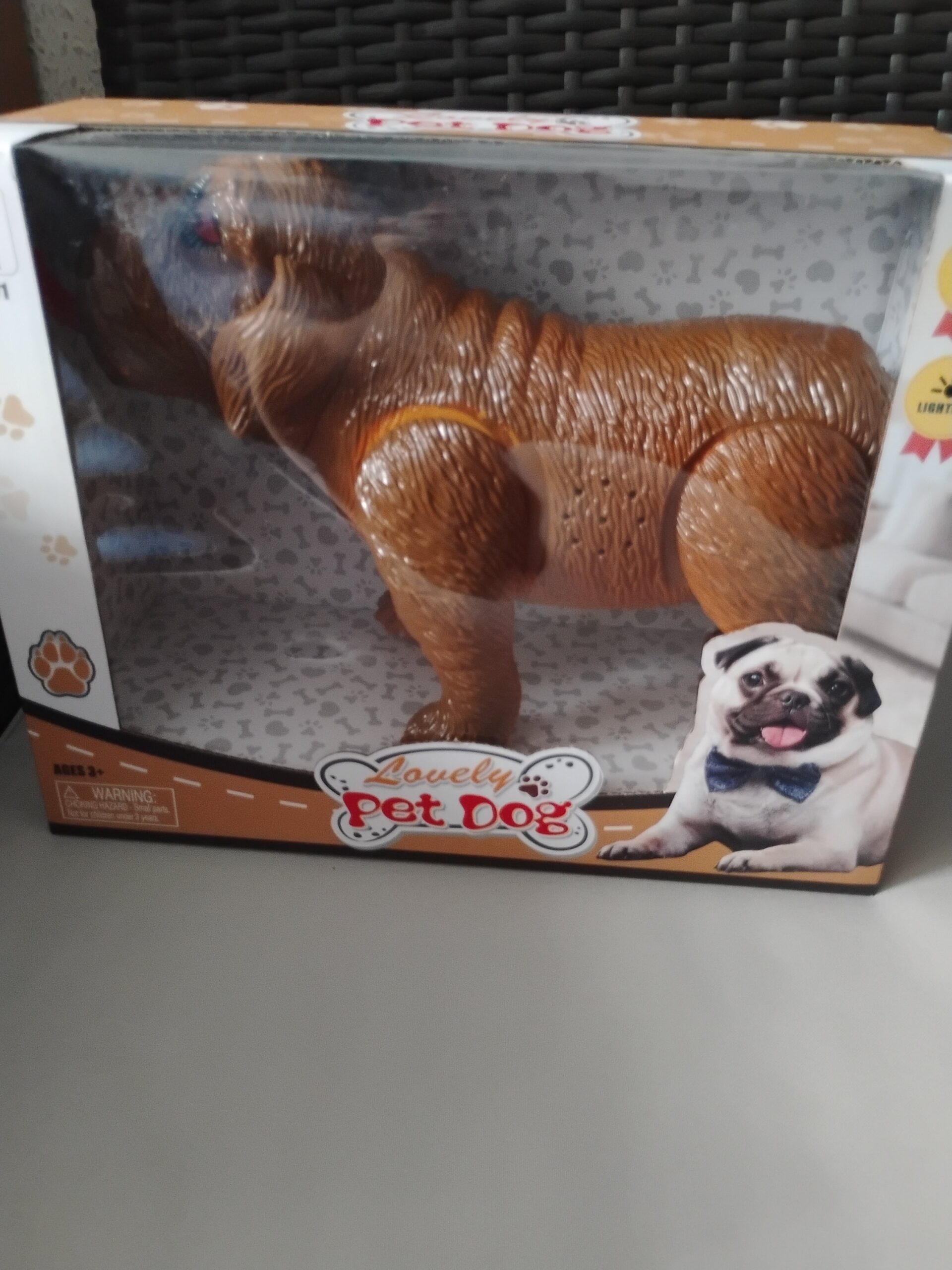 Zabawka pies chodzi świeci szczeka w zestawie smycz ubranie baterie szerokość 30 cm wysokość 20 cm