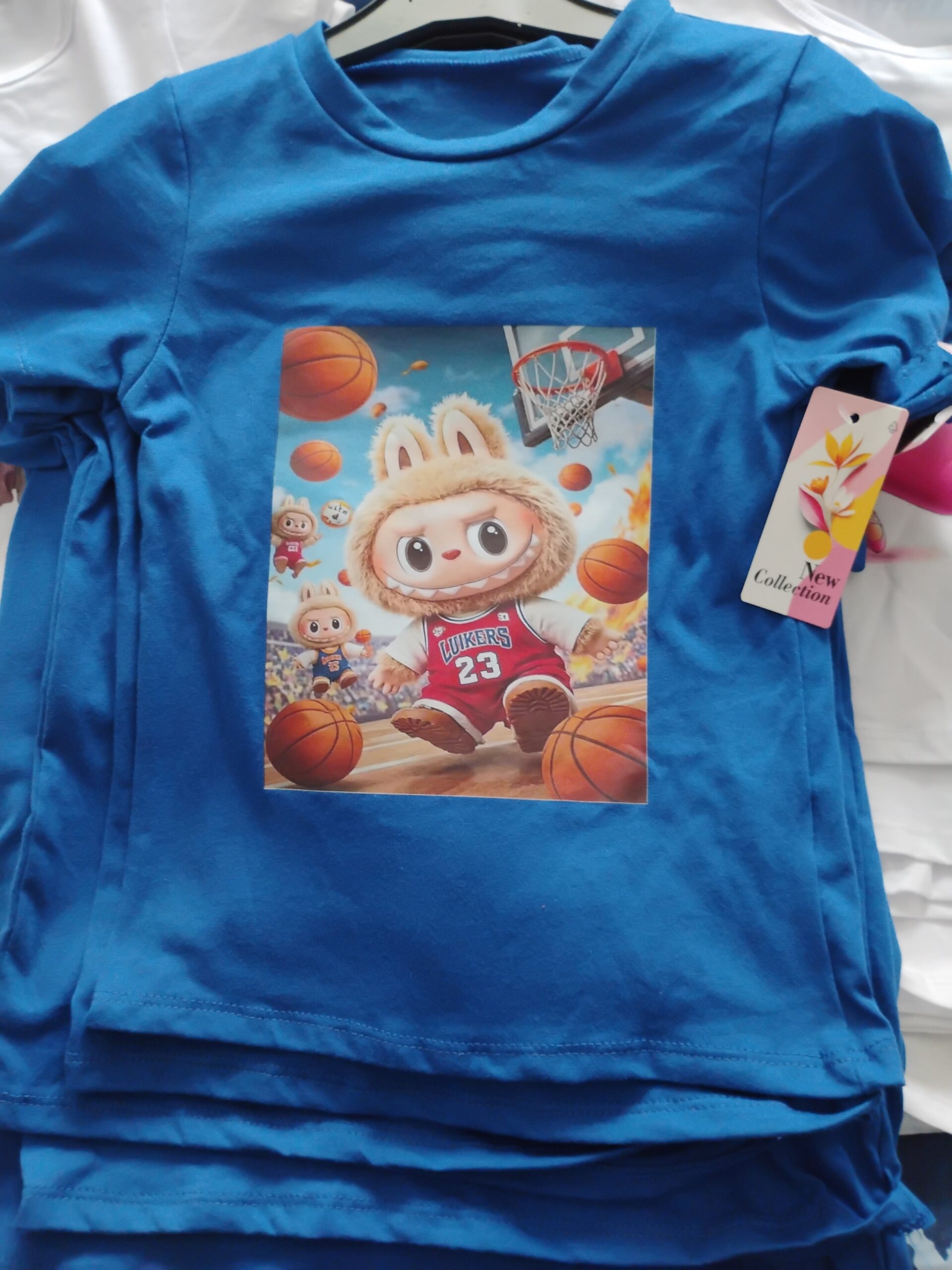 T-shirt Labubu niebieski . 95 procent bawełny. Włoski