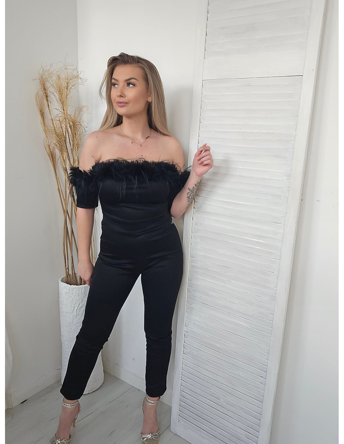Kombinezon czarny z piórami
