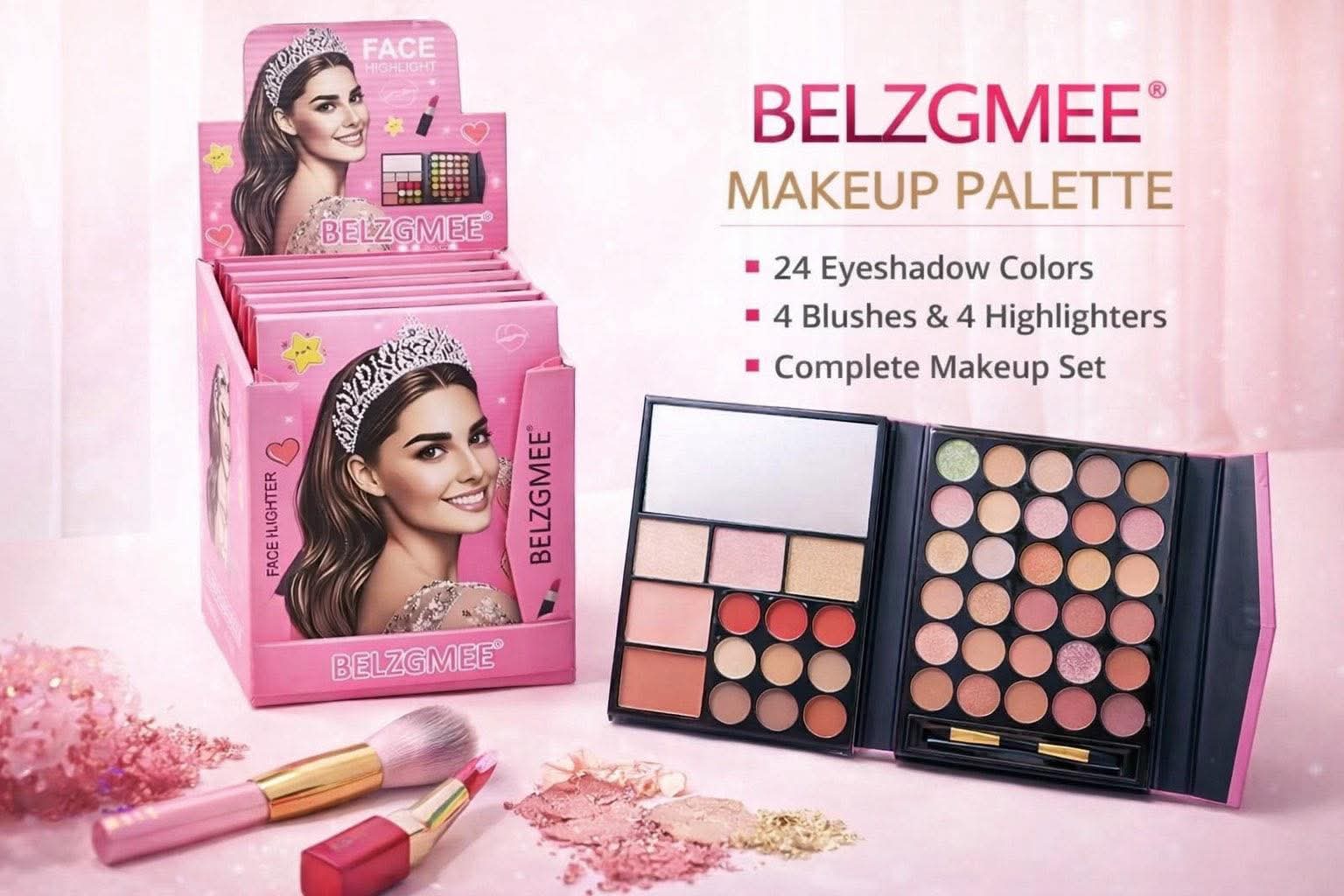 Cienie ,róże, rozświetlacze gabeczki do aplikacji lusterko