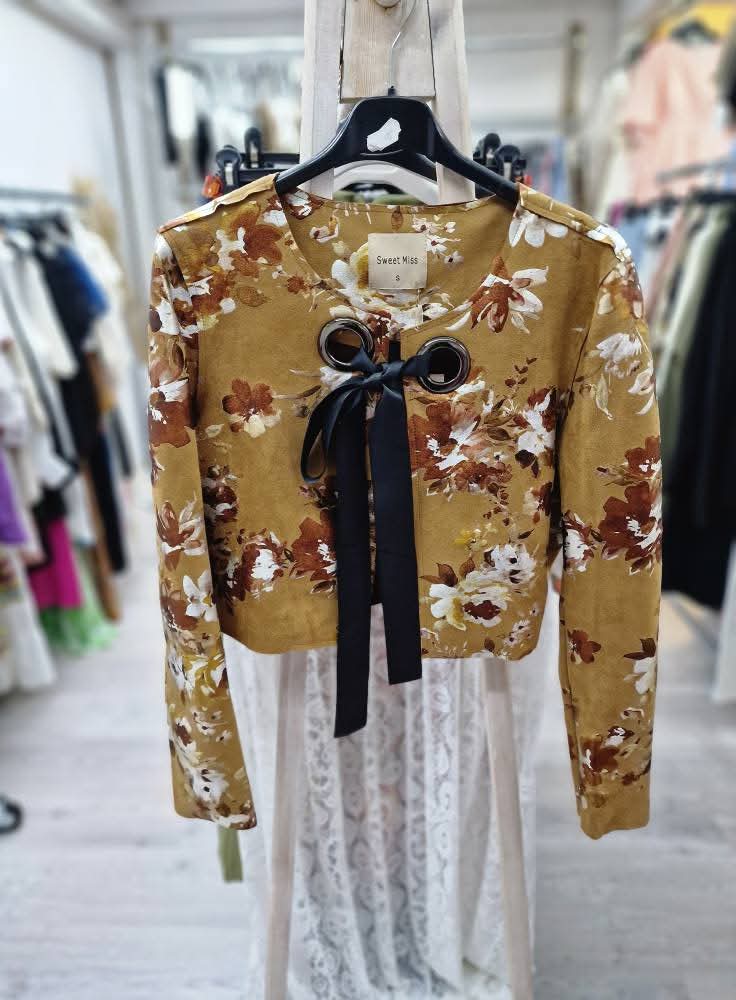 Żakiet brązowy w kwiaty