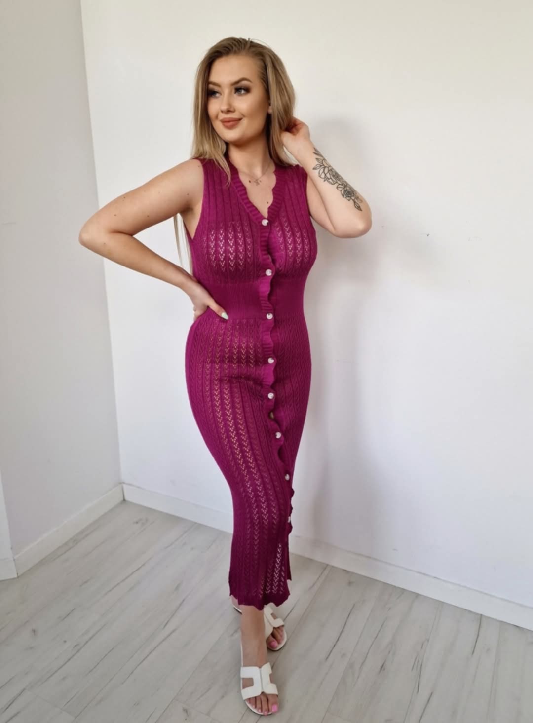 Sukienka ażurkowa burgund