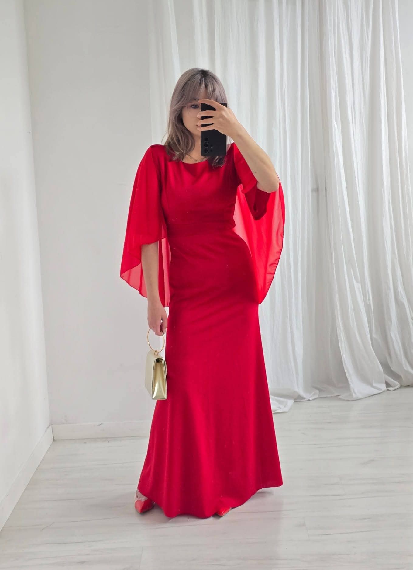 Sukienka z peleryną czerwona